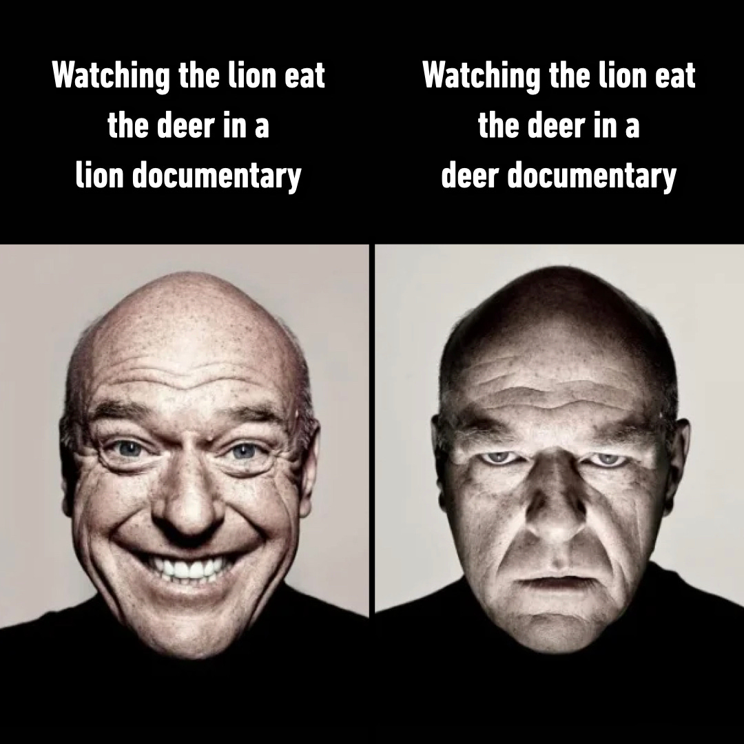 Το αστείο αυτό meme καταγράφει ένα παράδοξο που συμβαίνει συχνά (κι όχι μόνο σε …ντοκιμαντέρ με ζώα), ωστόσο σπάνια συνειδητοποιούμε: